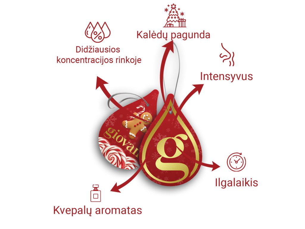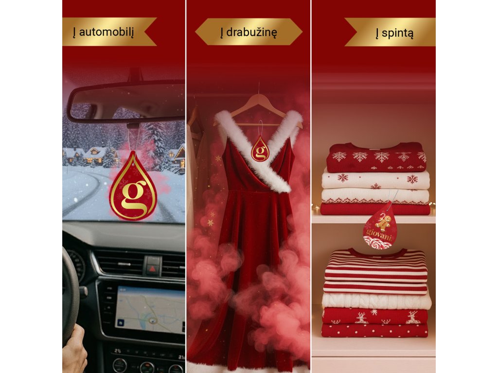 Automobilio kvapas Christmas Pie pripildo jūsų automobilį nepamirštama kalėdine atmosfera. Saldžiai prieskoninis aromatas su cinamono, obuolių, gvazdikėlių ir egzotiško kivio natomis kuria šiltą ir džiaugsmingą kvapą, kuris primena pasakiškus žiemos vakarus. Tinka ne tik pakabinti ant galinio vaizdo veidrodėlio, bet ir padėti į spintą ar drabužių stalčių.