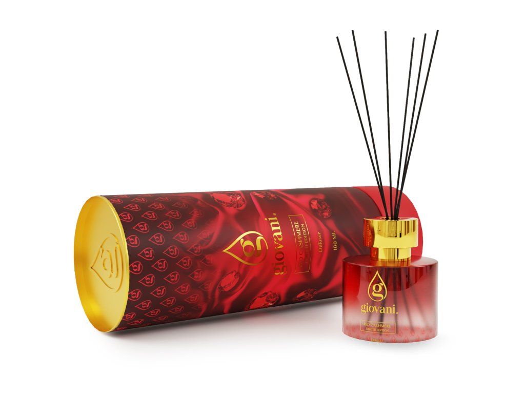 Jausmingas aromatas, kuriame dera gilumas ir šilta elegancija. Namų kvapas su lazdelėmis Giovani® RED CASHMERE atsiveria saldžiomis cukraus vatos, vyšnių, braškių ir aviečių natomis. Širdyje skleidžiasi subtilus našlaičių, pakalnučių ir jazminų derinys, papildytas anyžiaus prieskoniu.