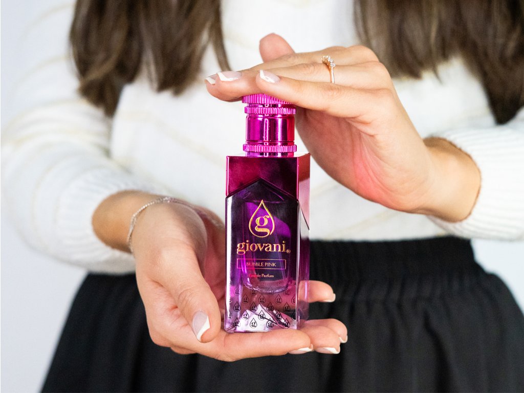 Žaismingai saldus ir nepaprastai moteriškas. Giovani® kvepalai BUBBLE PINK skamba kaip rausvas debesėlis persikų ir apelsinų su aldehidų kibirkštimi. Širdyje pražysta egzotiškas ylang-ylang, kuris švelniai susilieja su šildančia vanile ir švelniu muskusu. Šių saldžių kvepalų aromatas nukels jus į nerūpestingą pasaulį.
