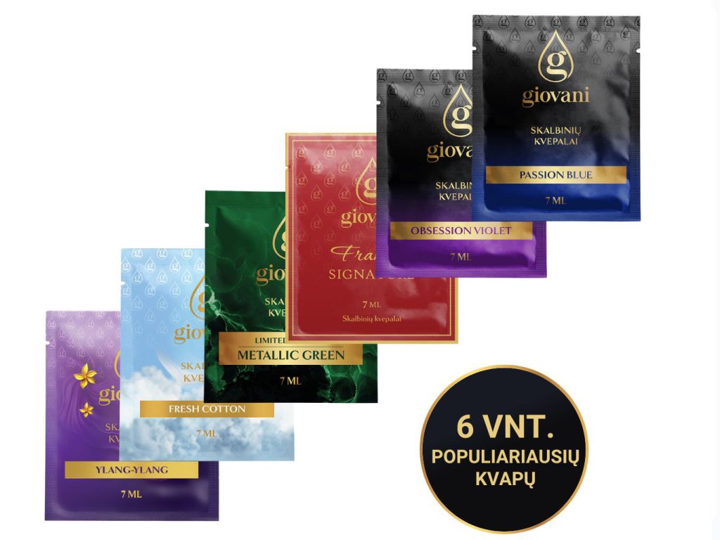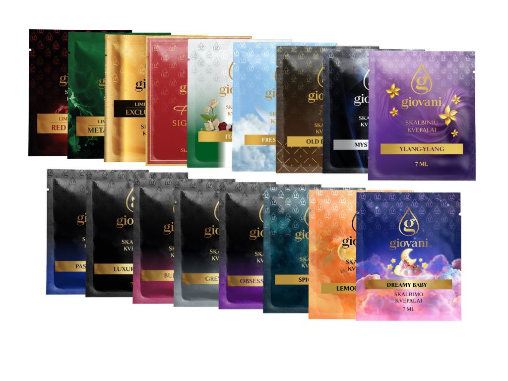 15 Vienetų Giovani skalbinių kvepalų pavyzdžių