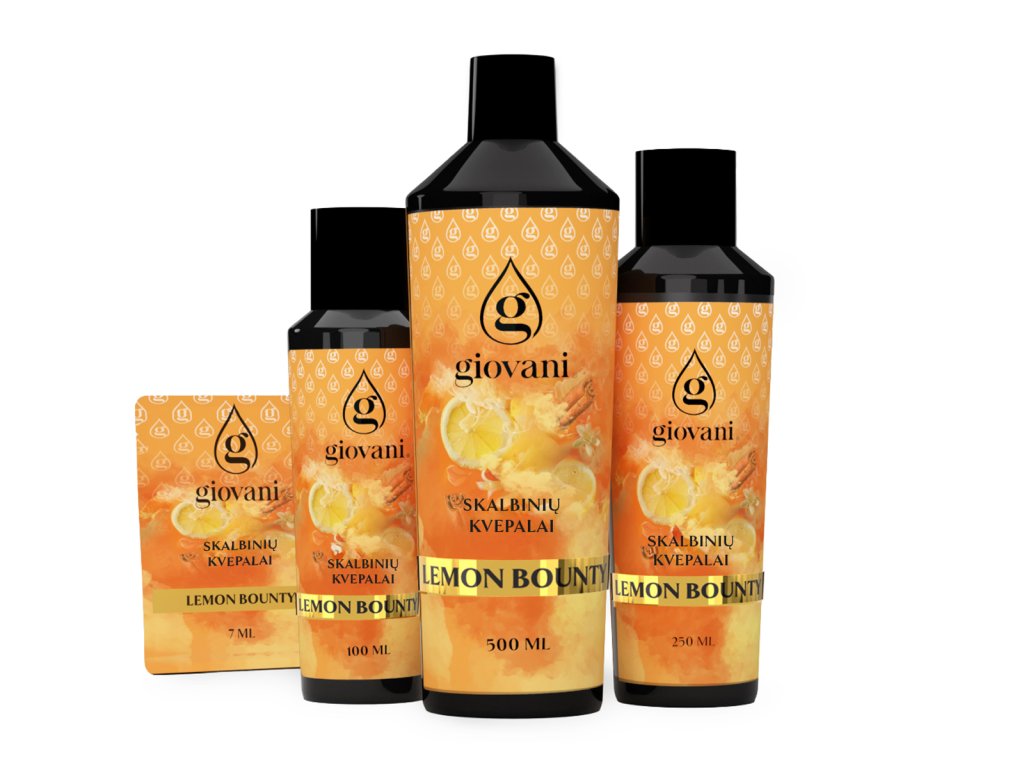 LEMON BOUNTY Kvapas skalbiniams – tai unikalus saldumo ir gaivumo derinys. Švelnios vanilės ir žaižaruojantis citrusinių vaisių derinys sukuria nepamirštamą kvapų alchemiją. LEMON BOUNTY skalbinių kvepalų kvapiosios esencijos suteikia skalbiniams aksominio saldumo ir švelnaus vaisių ir gėlių dvelksmo, praturtinto pikantiškomis cinamono natomis.