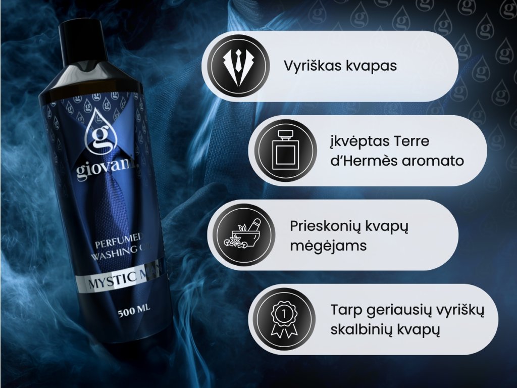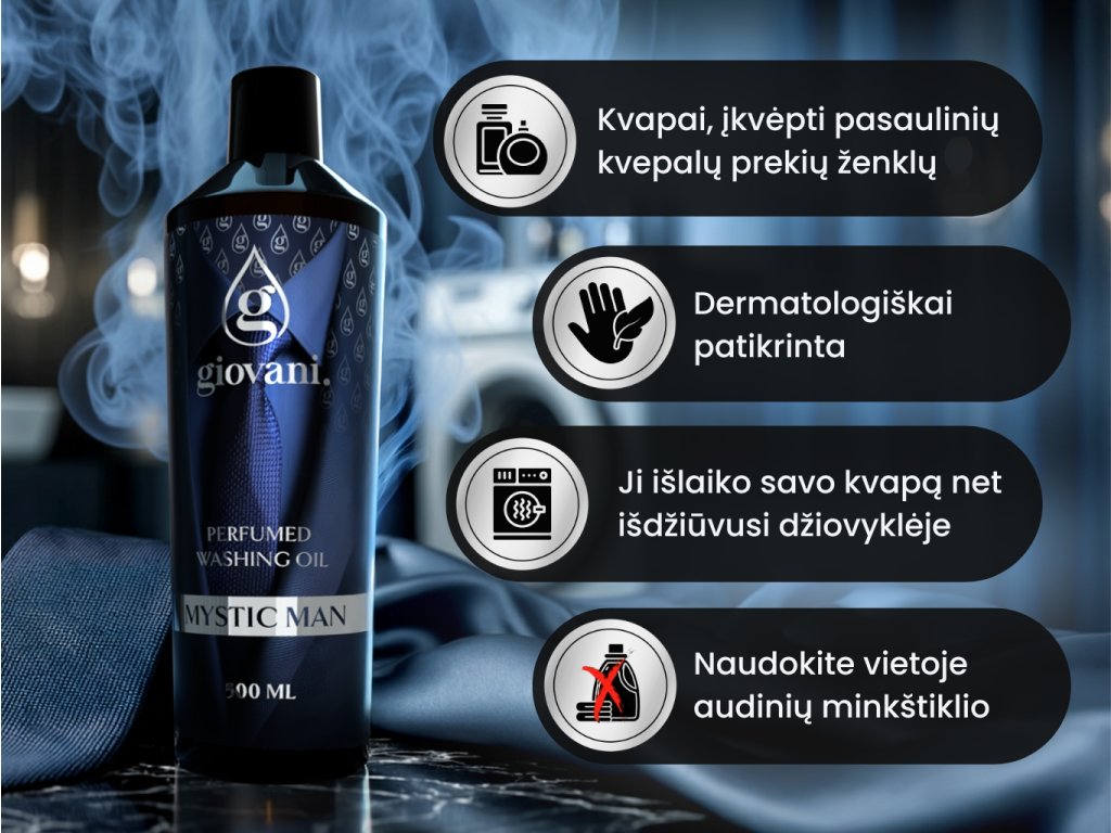 Mystic Man – tai skalbimo aliejiniai kvepalai, su kuriais kiekvienas vyras savo skalbiniuose jausis kaip tikras ramybės ir stiprybės šeimininkas.